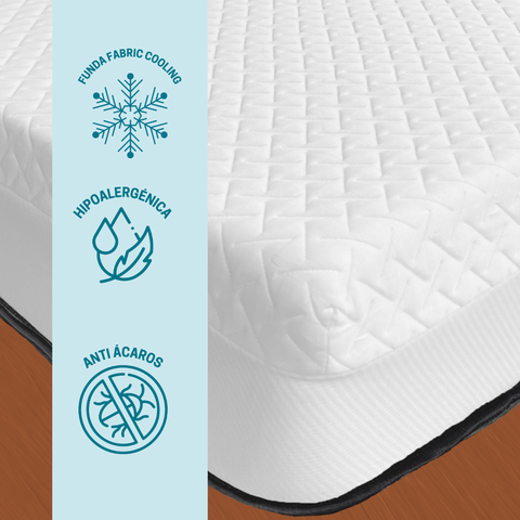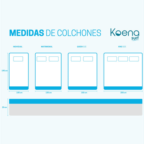 Firmeza Alta: ideal para quienes buscan soporte firme para espalda y postura. Espuma de Alta Densidad Koena®: brinda estabilidad y confort durante toda la noche. Altura de 20 cm: tamaño estándar perfecto para todo tipo de base. Tela Cooling Fabric: mantiene la superficie fresca y cómoda, incluso en climas cálidos....