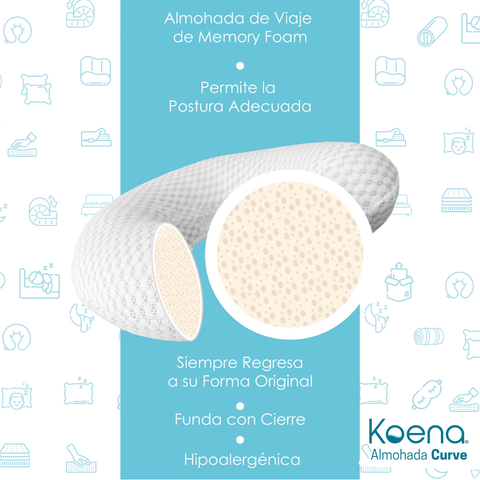 Almohada de Viaje Koena® Curve | Compacta y Suave | Soporte Ergonómico